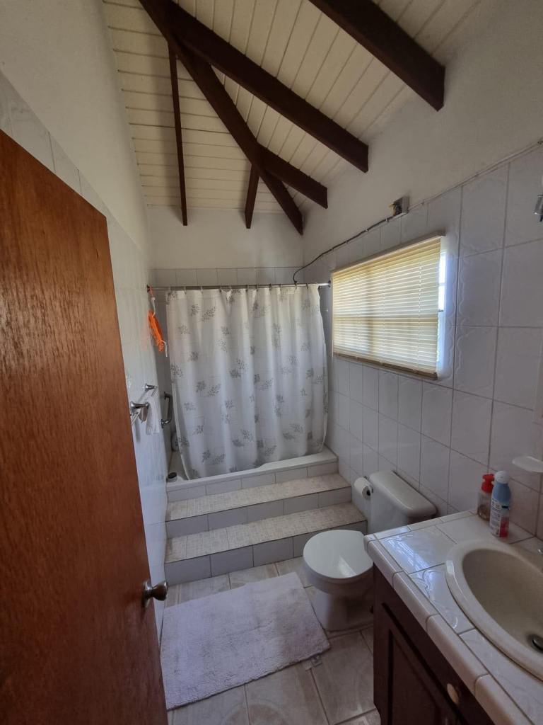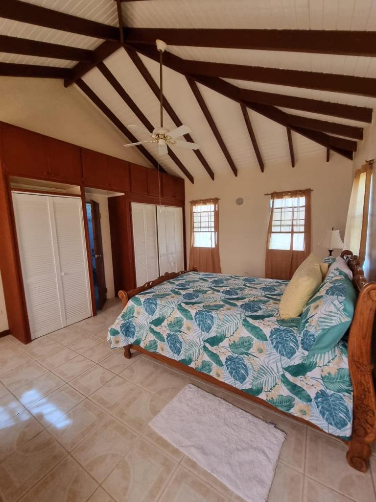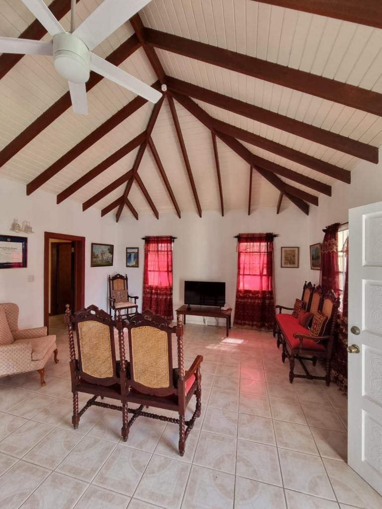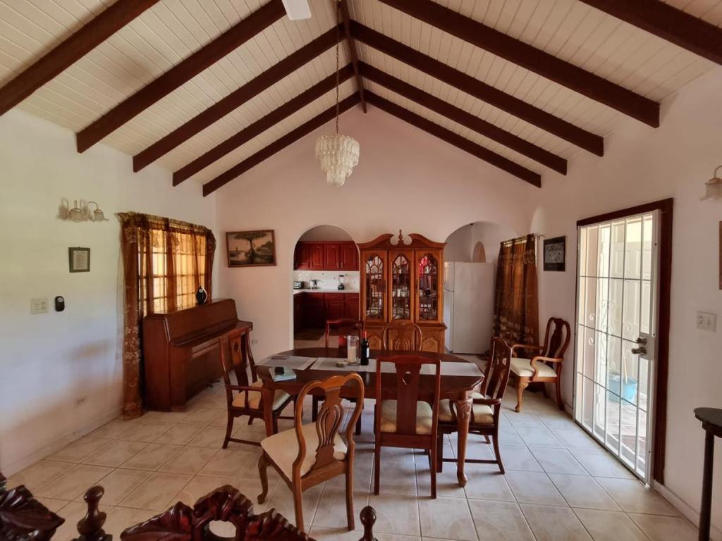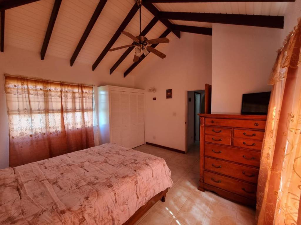 Prospect Villa consists of two spacious floors of comfort and beauty. This bedroom, three bathroom home is tastefully decorated with antique as well as modern day furnishings and includes a Library or home office setting. The backyard is spacious with a fully tiled area suitable for Family gatherings or backyard parties. There is a single car garage, laundry room and one-bedroom apartmemt. It is located in the upscale residential Prospect community and affords views of the Caribbean Sea and Nevis Peak.