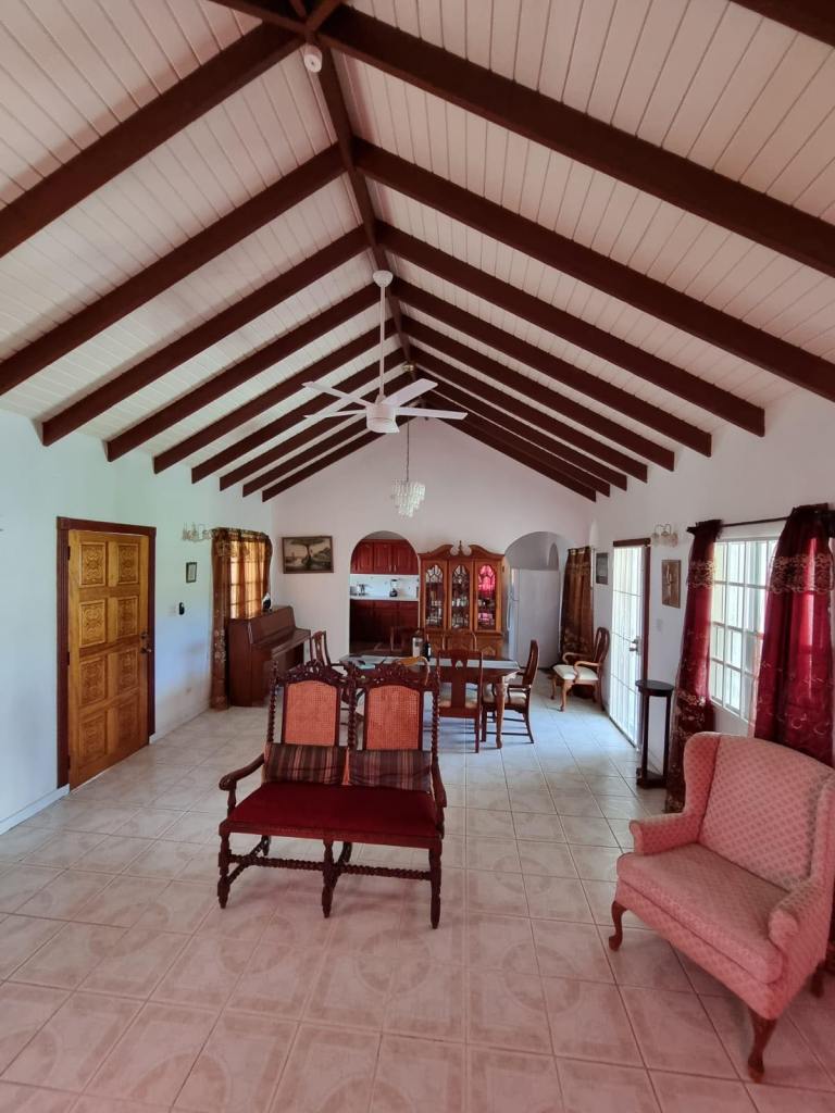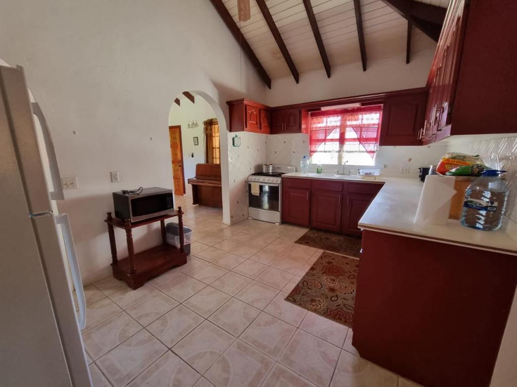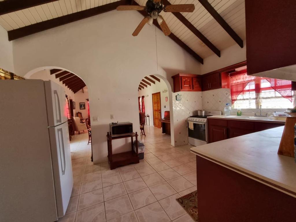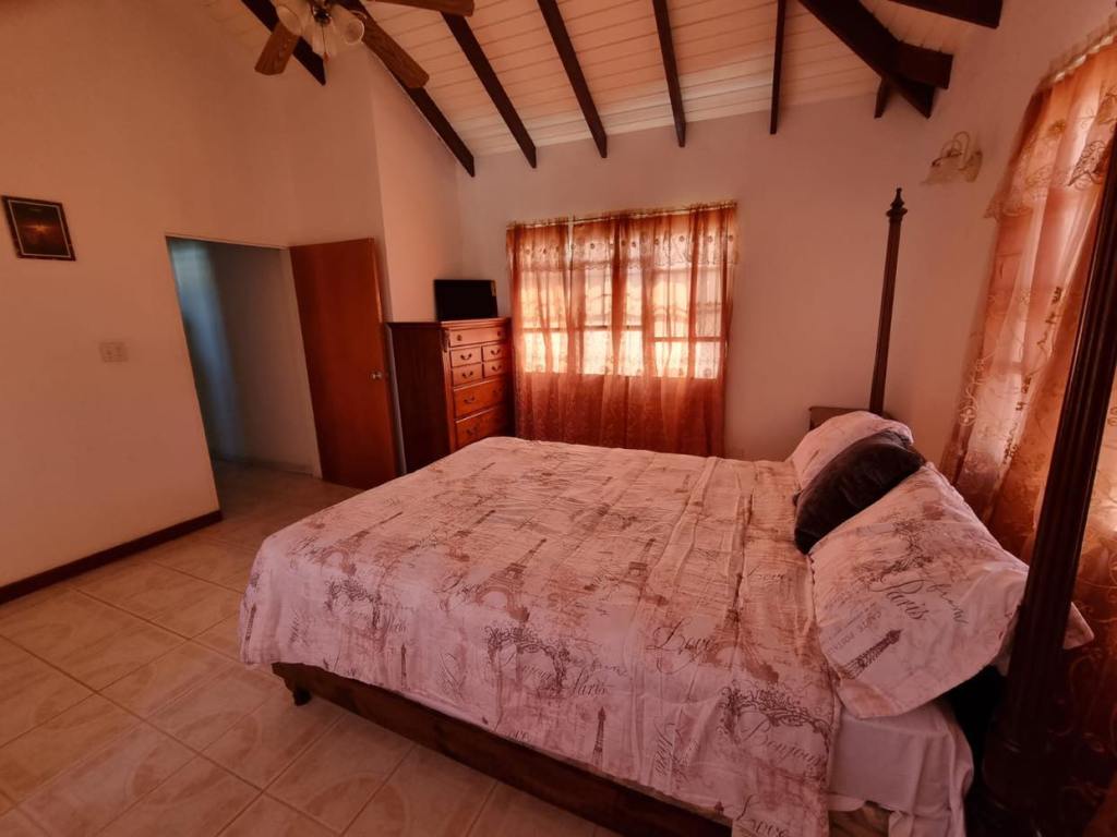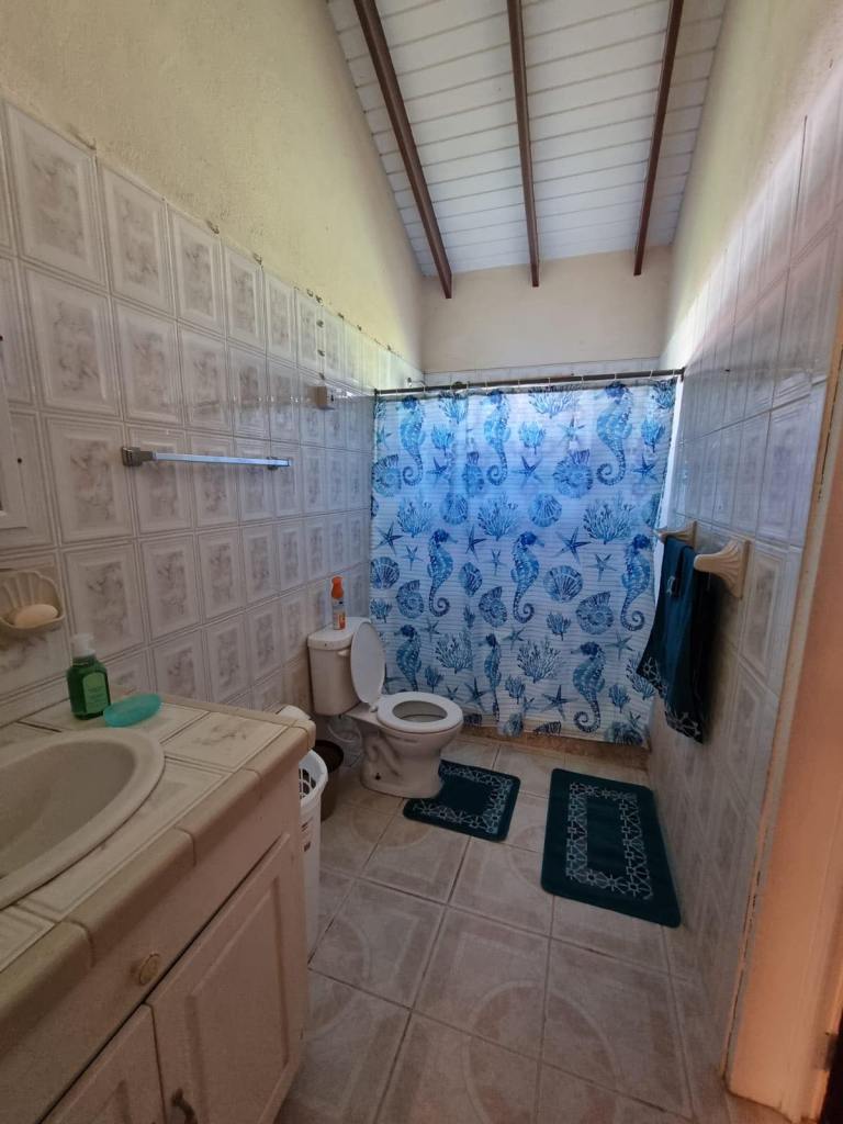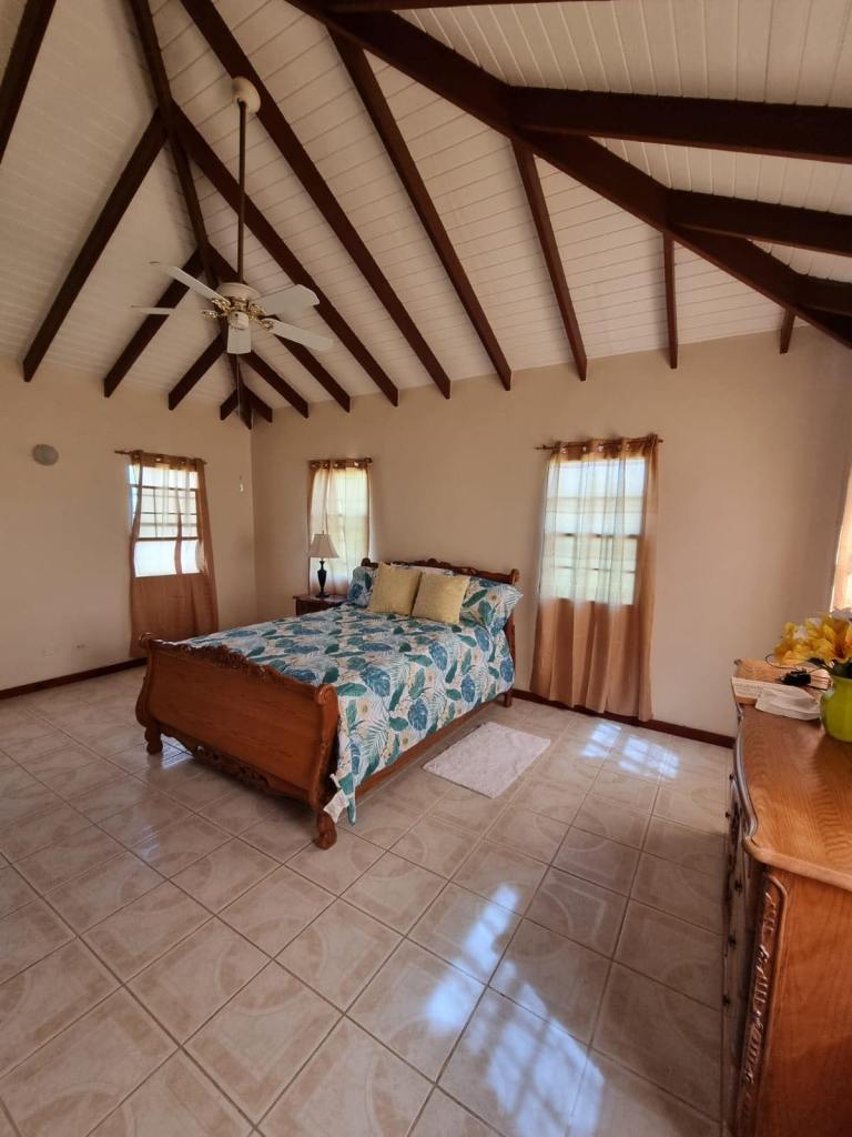 Prospect Villa consists of two spacious floors of comfort and beauty. This bedroom, three bathroom home is tastefully decorated with antique as well as modern day furnishings and includes a Library or home office setting. The backyard is spacious with a fully tiled area suitable for Family gatherings or backyard parties. There is a single car garage, laundry room and one-bedroom apartmemt. It is located in the upscale residential Prospect community and affords views of the Caribbean Sea and Nevis Peak.